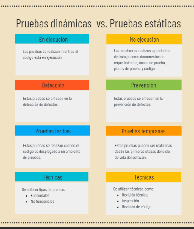 - Pruebas dinámicas , implican la ejecución del componente o sistema que se está probando.